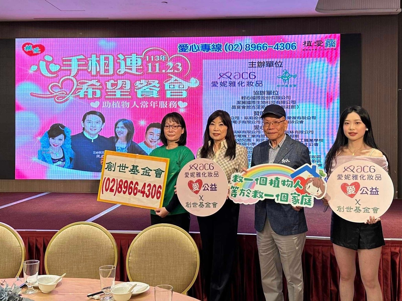 愛妮雅化妝品集團秉持著關懷社會的初心,於近日與創世基金會共同舉辦募款餐會慈善活動,成功為植物人常年服務經費募款,現場氣氛熱烈,席開爆滿,洋溢著愛與希望的正能量。
