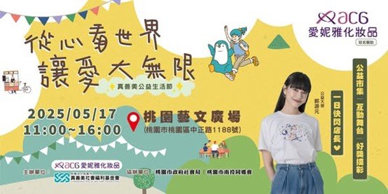 愛妮雅化妝品集團於桃園市藝文廣場舉辦「2025 真善美公益生活節」,以「從心看世界 讓愛大無限」為主題,攜手真善美社會福利基金會,號召企業與民眾共同為憨兒打造一處安全、有尊嚴的終老家園。