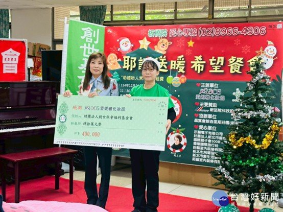 身為創世基金會的長期堅定支持者,愛妮雅化妝品集團蕭碧月副總裁秉持「愛、感恩、利他」的企業核心精神,在最艱難的時刻率先伸出援手。愛妮雅化妝品集團蕭副總裁心繫植物人安養服務的穩定性,深知每一份溫暖對這些家庭的重要性,因此決定主動發起「耶誕送暖愛心餐會」,為創世板橋院籌募急需的植物人照護經費。